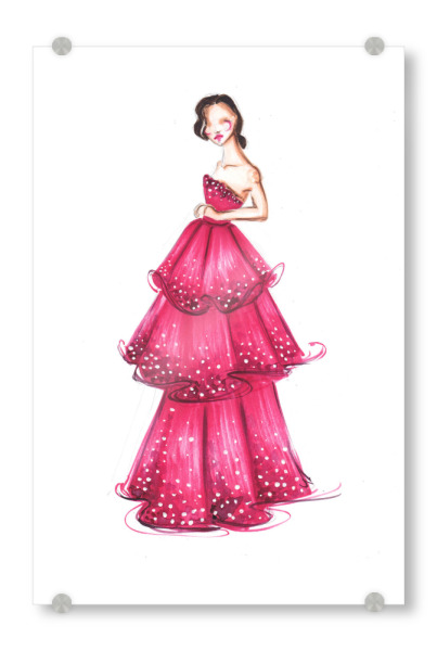 Acrylglasbild "Girl in Magenta Gown" artboxONE - Fashion - Mode,Mode illustration,Rosa,Mode,Mode kunst,Dress,Kleid