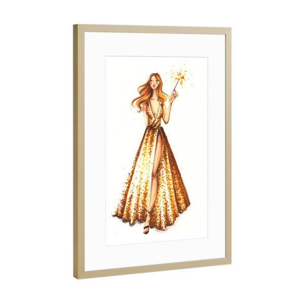 Poster mit Rahmen Gold "Party Girl with Sparkler" artboxONE - Fashion - Fashion,Fashion illustration,Girl,Dress