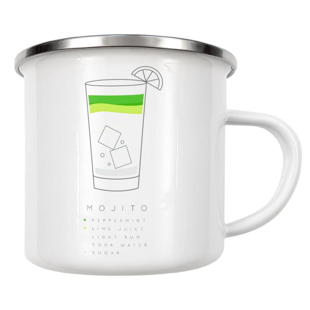 Emaille Tasse "Mojito cocktail flat" artboxONE - Essen & Trinken,Essen & Trinken / Alkohol - Cocktail,Flat,Drink,Beverage,Alcohol,Glass,Vintage,Mojito