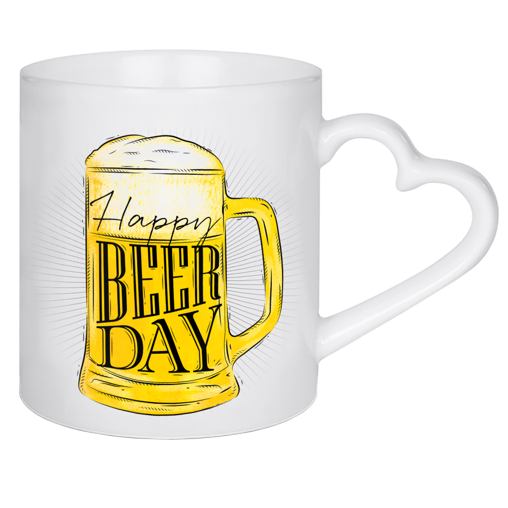 Herztasse "Beer day" artboxONE - Schwarzweiß,Essen & Trinken / Alkohol - Beer,Best,Choice,Bar,Alcohol,Menu,Glass,Pub,Drink,Graphic,Chalk,Retro,Vintage
