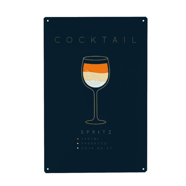 Metall Poster "Spritz cocktail flat" artboxONE - Essen & Trinken,Essen & Trinken / Alkohol - Cocktail,Flat,Drink,Beverage,Alcohol,Glass,Vintage,Spritz