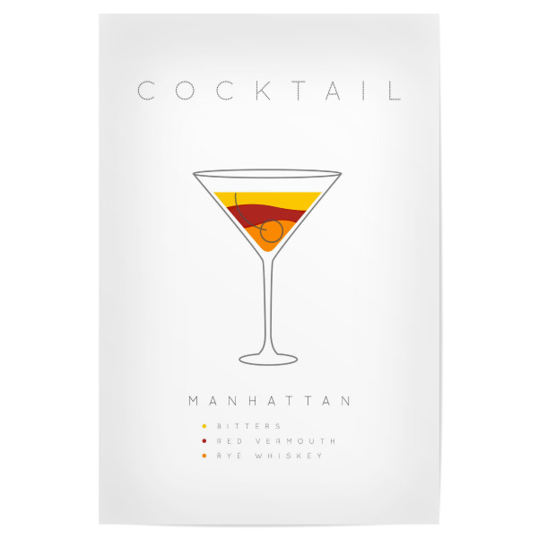 Poster "Manhattan cocktail flat" artboxONE - Essen & Trinken,Essen & Trinken / Alkohol - Cocktail,Flat,Drink,Beverage,Alcohol,Glass,Vintage,Manhattan