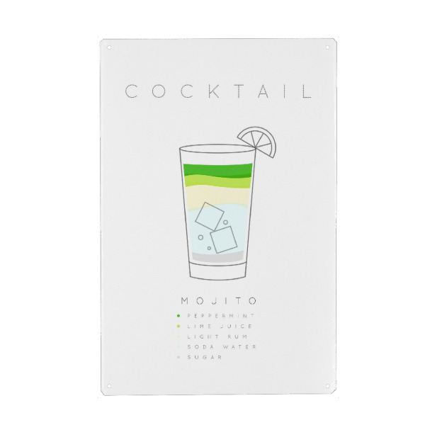 Metall Poster "Mojito cocktail flat" artboxONE - Essen & Trinken,Essen & Trinken / Alkohol - Cocktail,Flat,Drink,Beverage,Alcohol,Glass,Vintage,Mojito