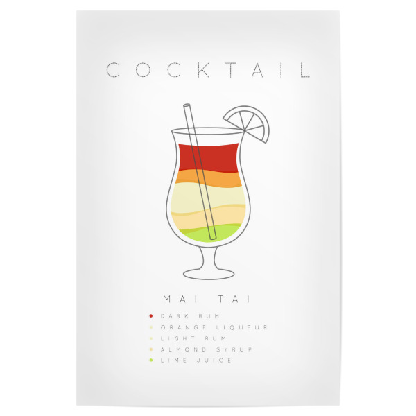 Poster "Mai Tai cocktail flat" artboxONE - Essen & Trinken,Essen & Trinken / Alkohol - Cocktail,Flat,Drink,Beverage,Alcohol,Glass,Vintage,Mai,Tai