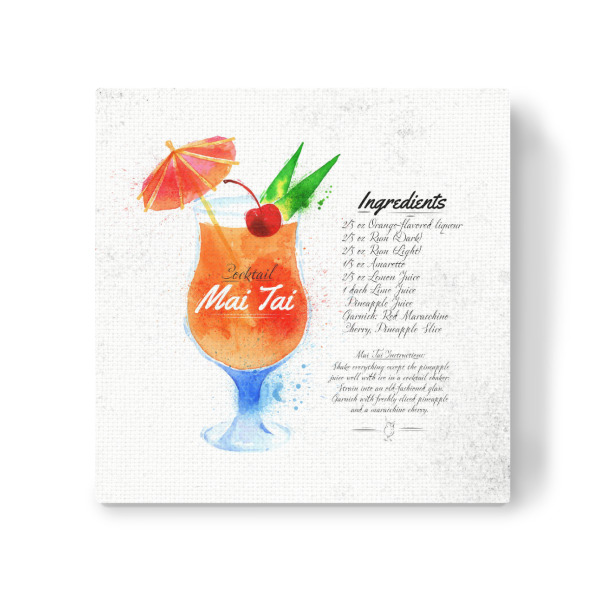 Leinwandbild "Mai Tai cocktail watercolor" artboxONE - Essen & Trinken / Alkohol - Mai,Tai,Cocktail,Watercolor,Glass,Drink,Alcohol,Juice,Fresh,Party