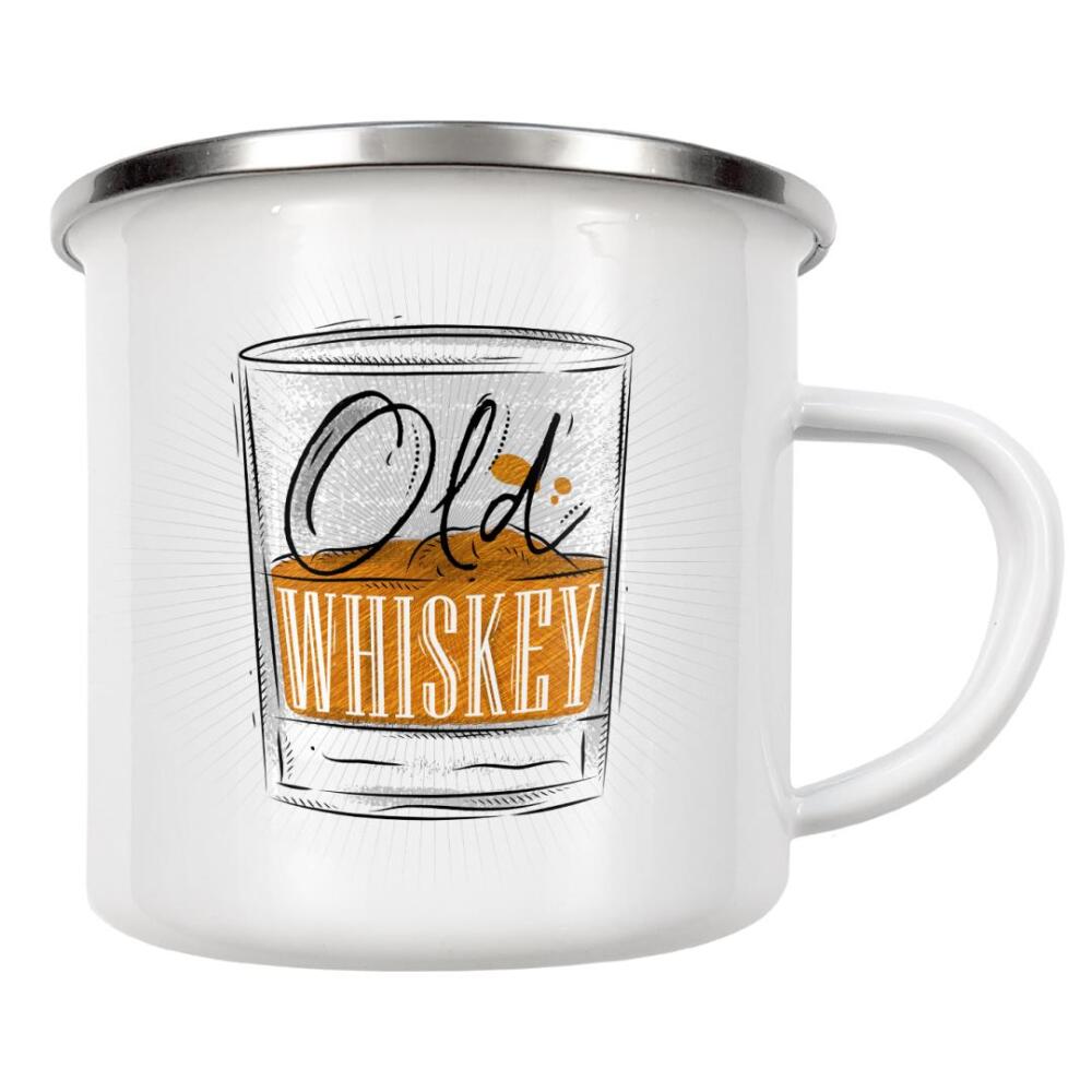 Emaille Tasse "Old Whiskey Paper" artboxONE - Essen & Trinken / Alkohol - Whiskey,Bourbon,Alcohol,Drink,Aged,Vintage,Old,Design,Retro,Scotch,Bottle