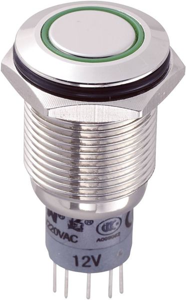 TRU COMPONENTS TC-7494692 TC-GQ16F-10E/L/G/12V/S Vandalismusgeschützter Drucktaster 48 V/DC 2 A 1 x Aus/(Ein) tastend Grün IP65 1 St.