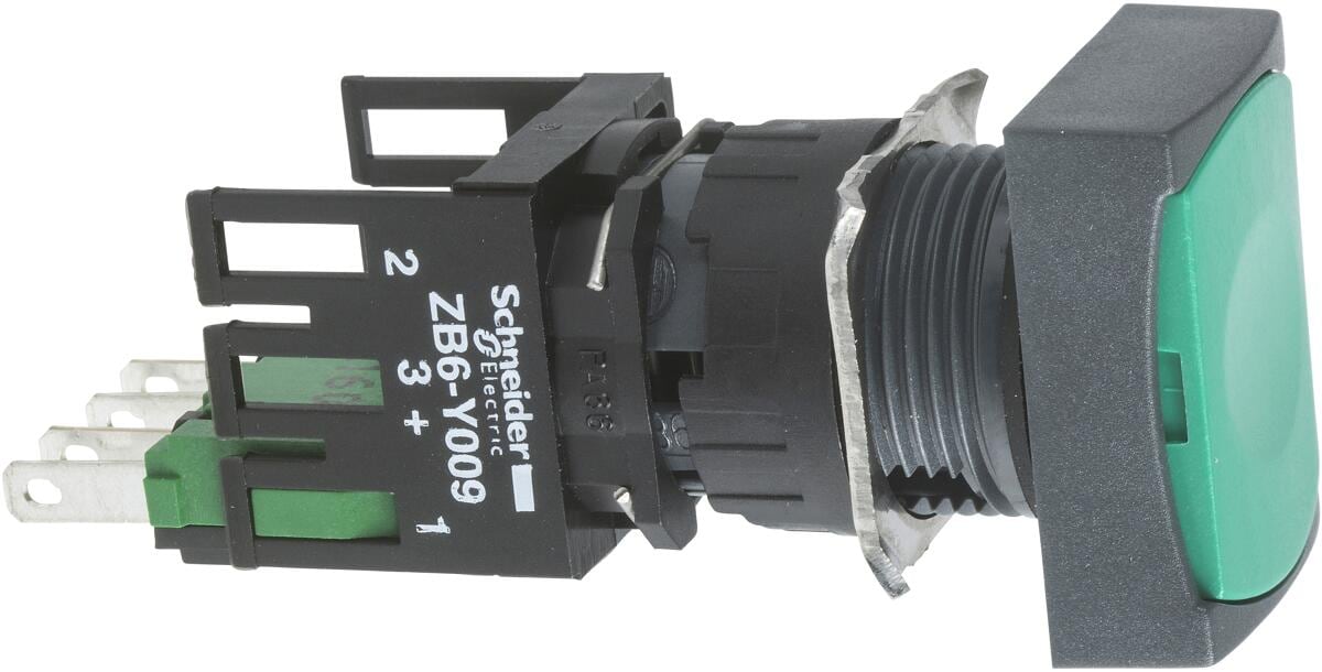 Schneider Electric XB6DA35B Drucktaster, Ø 16, flach, ohne Rastung, 1S+1Ö, grün