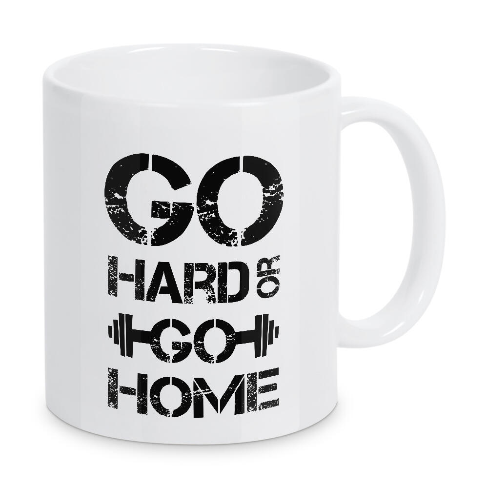 Tasse "Go hard" artboxONE - Typografie,Schwarzweiß,Sport,Sport / Motivation,Männer - Hantel,Dumbbell,Gym,Fit,Fitness,Sport,Hard,Home,Motivation