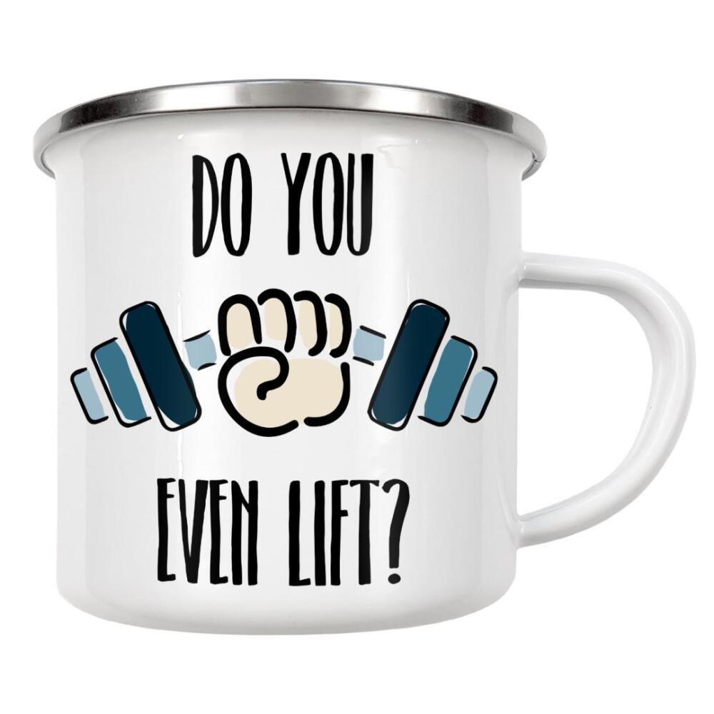 Emaille Tasse "Do you even lift" artboxONE - Typografie,Schwarzweiß,Sport,Sport / Motivation - Lift,Fit,Training,Fitness,Gym,Dumbbell,Sport,Motivation