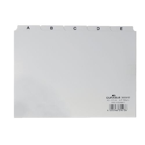 DURABLE Leitregister A5 5/5-tlg. A-Z geprägt PP, 365002 weiß