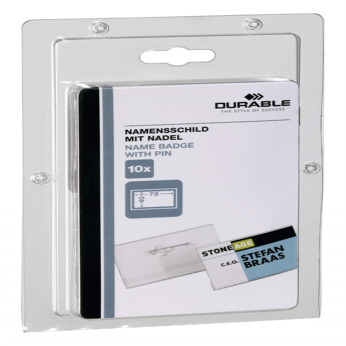 Durable Namensschild 40x75mm tr 10St mit Nadel SB Verpackung