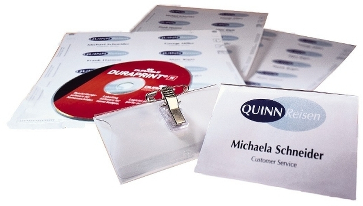 Durable Namensschilder Set 54x90mm mit Software Packung mit 18 Stück