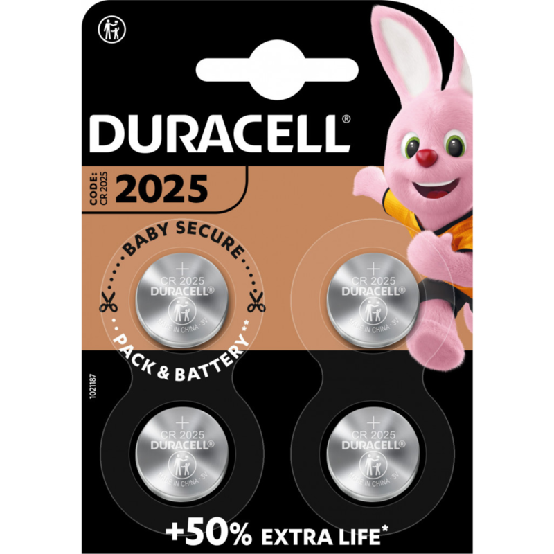 Duracell Batterie Lithium, Knopfzelle, CR2025, 3V Electronics, Retail Blister (4-Pack)