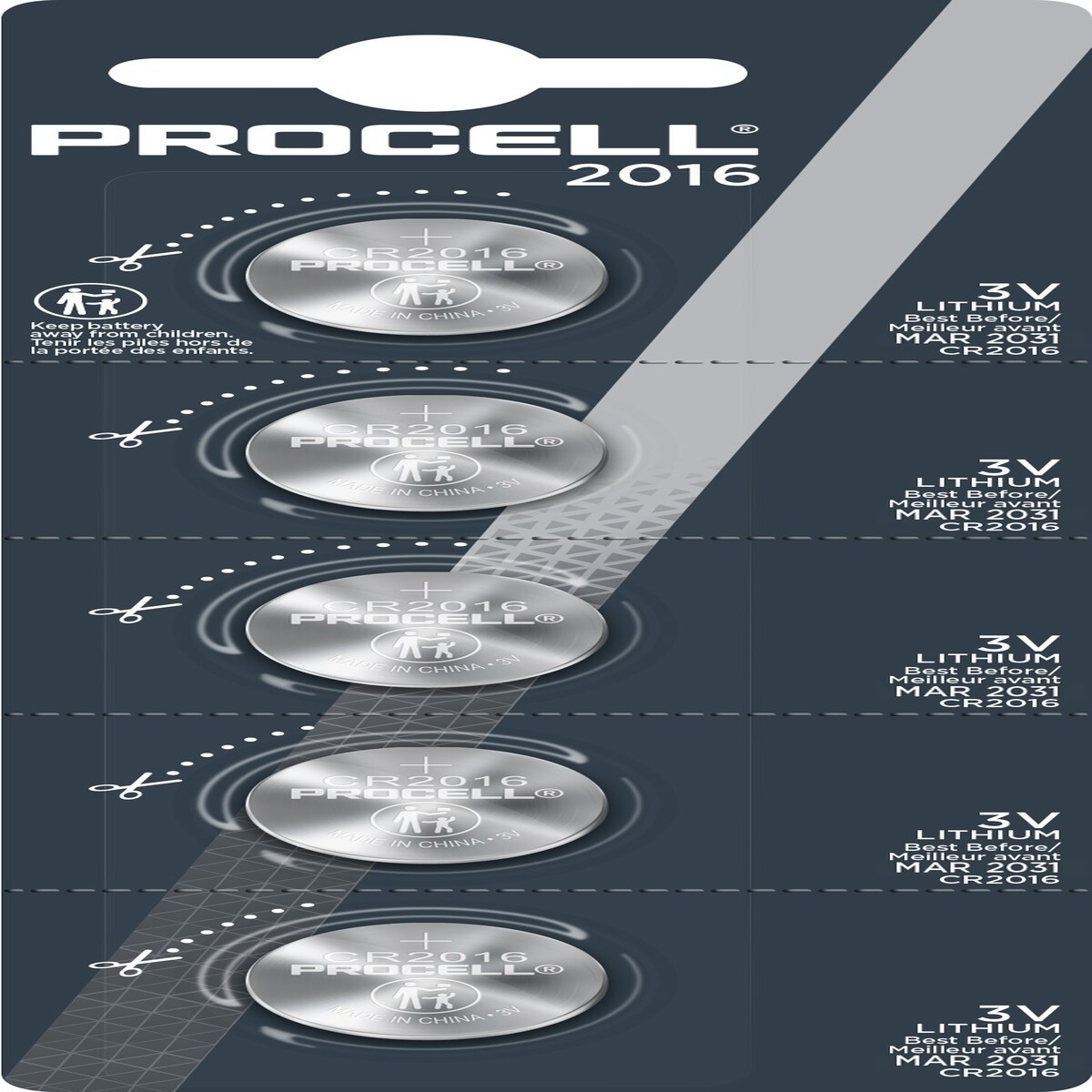 DURACELL Procell Batterie Lithium, Knopfzelle, CR2016, 3V Intense, Retail-Blister (5-Pack)