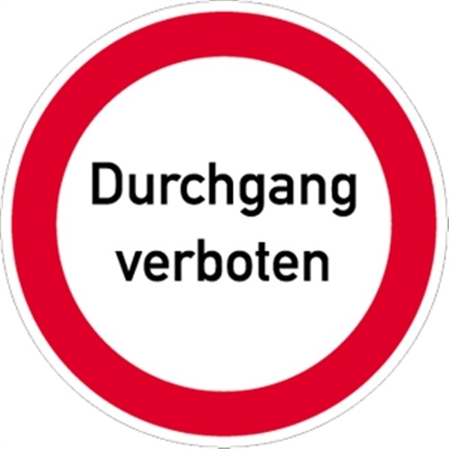 Schild Durchgang verboten, Textschild, Alu, Ø 400 mm