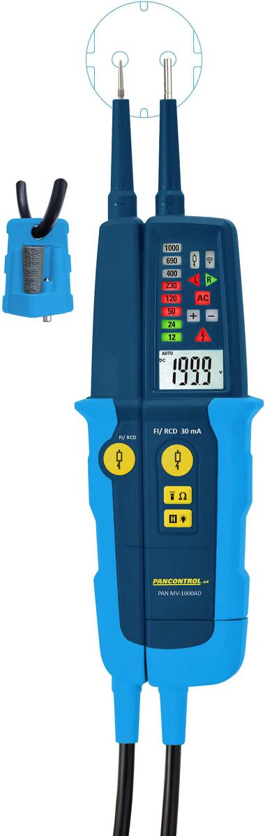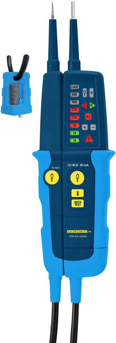 Pancontrol PAN MV-1000A Spannungs- & Durchgangsprüfer mit LED-Anzeige, 12-1000 V AC/DC, Drehfeld-Anzeige, 30mA FI-Test
