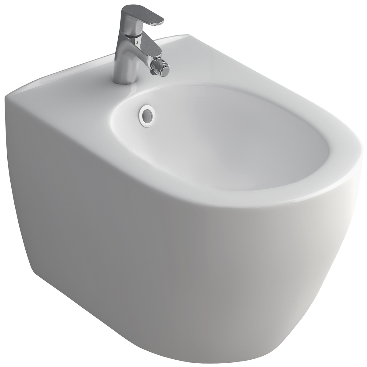 Alpenberger Hänge-Bidet mit HG Focus Einhebel-Bidetmischer und Ablaufgarnitur | Toilette Komplett-Set Dusch WC mit Überlaufschutz | Keramik Wand-Bidet