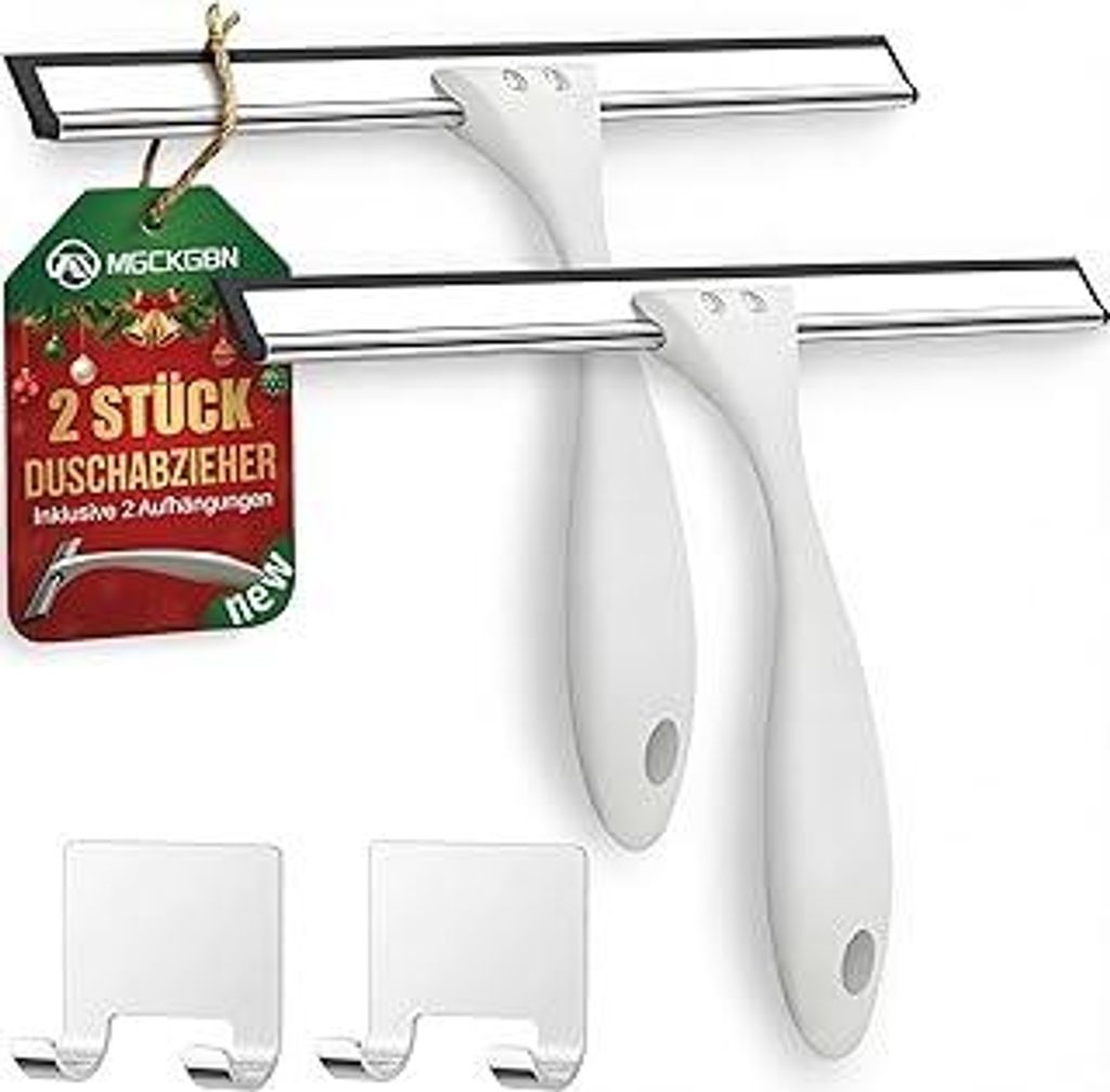 Duschabzieher Silikon mit 2 Haken –schaber für duschwand abzieher dusche –Fensterwischer, Glasabzieher für Küche, Spiegel, Auto (Weiß, 11inch)