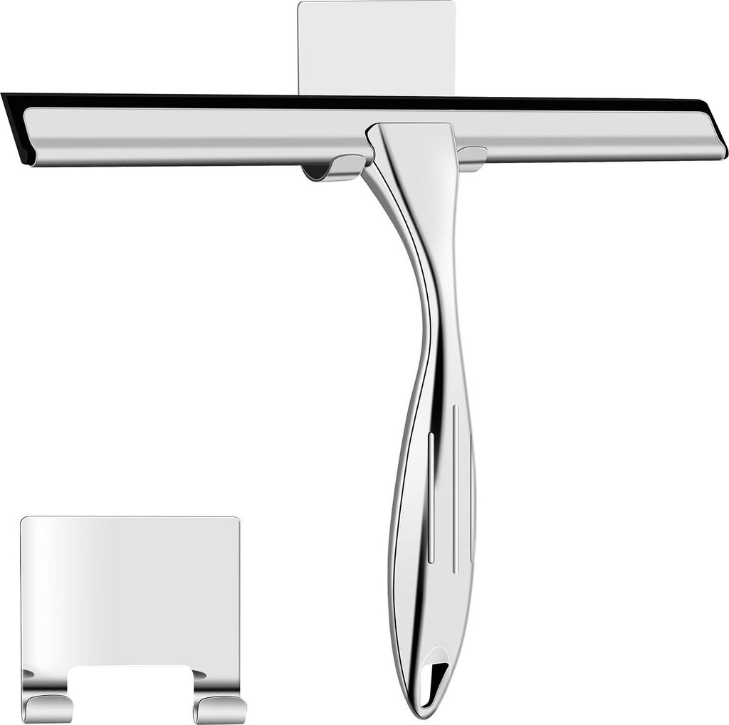 Duschabzieher, Edelstahl Duschwischer mit Wandaufhänger Ohne Bohren - Glas Abzieher Dusche - Fensterabzieher