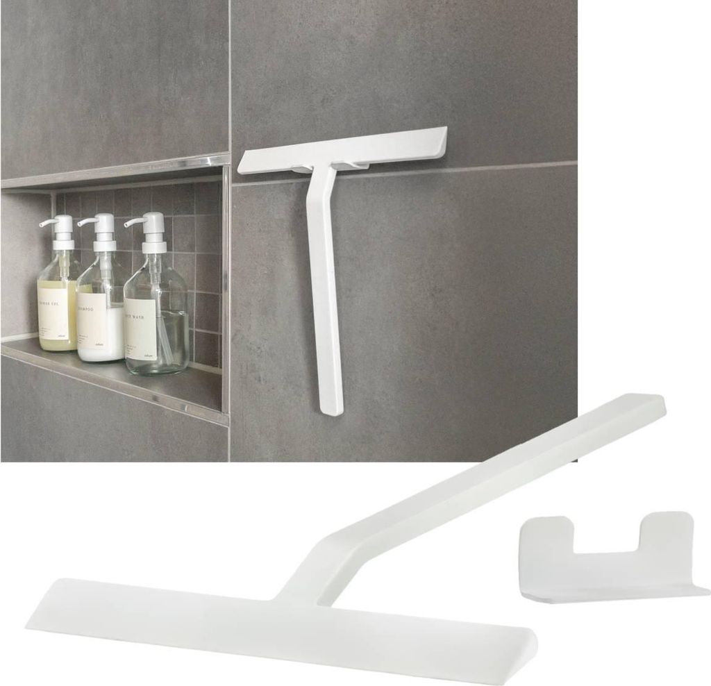 DEKAZIA Duschabzieher weiß | Abzieher Dusche Duschabzieher Silikon Duschabzieher mit Halterung Duschwand Abzieher Duschkabinenabzieher Flitsche