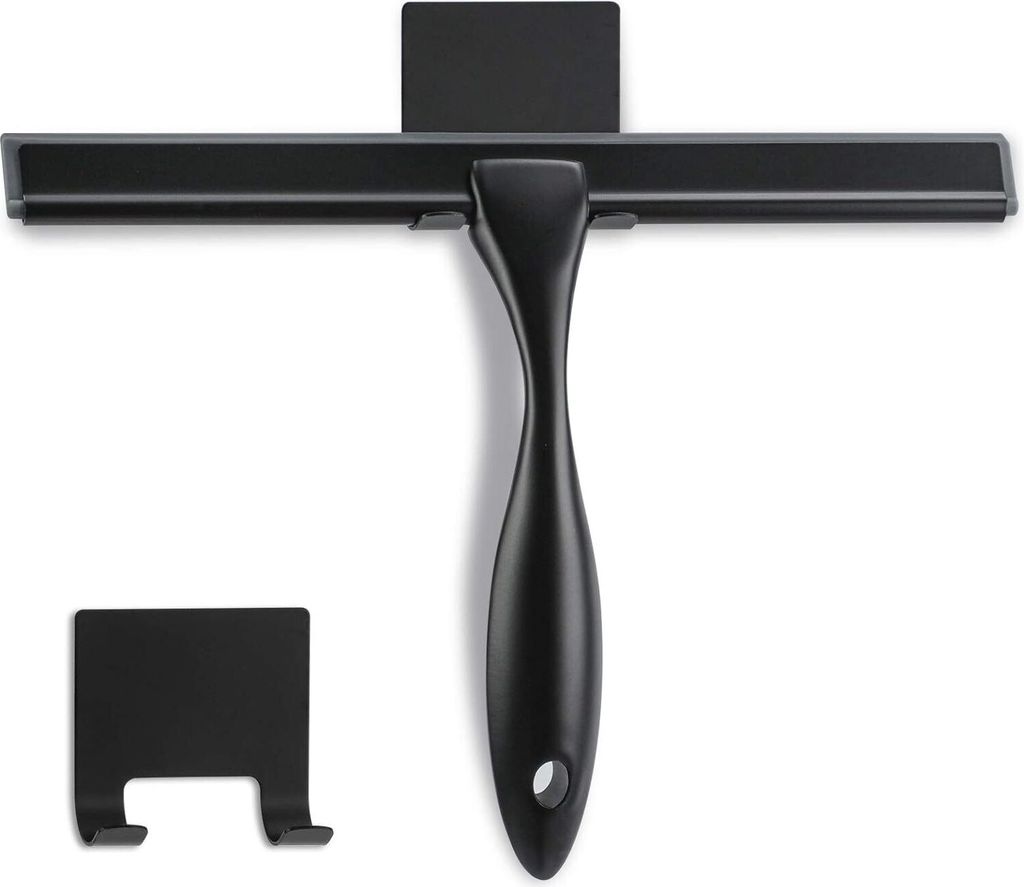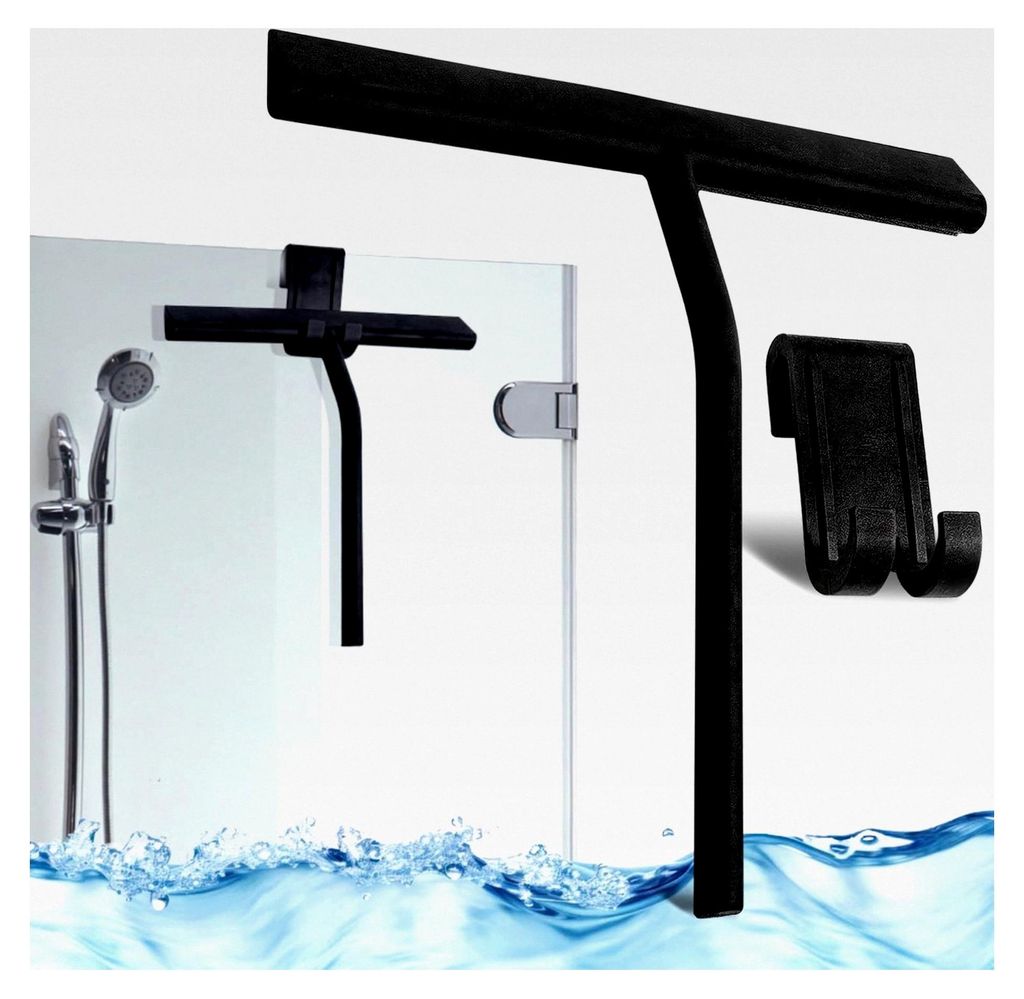 Duschabzieher Schwarz mit Halterung, Silikon Abzieher Dusche Fensterabzieher ohne Bohren für Badezimmer Glastür Spiegel Fliesen Autofenster