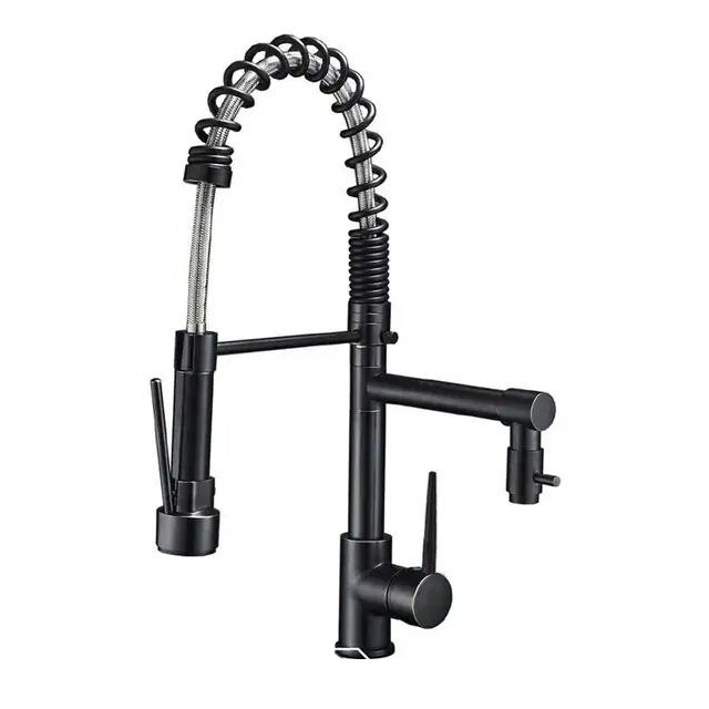 Duscharmatur aus schwarzer Bronze mit Warm- und Kaltwassermischer und doppeltem Auslaufkran