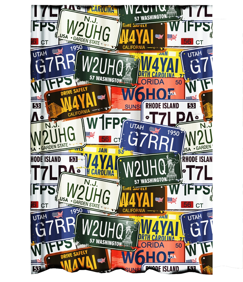 Ekershop DIGITAL Textil Duschvorhang USA Kennzeichen 120 x 200 cm Weiß ink. 8 Ringe
