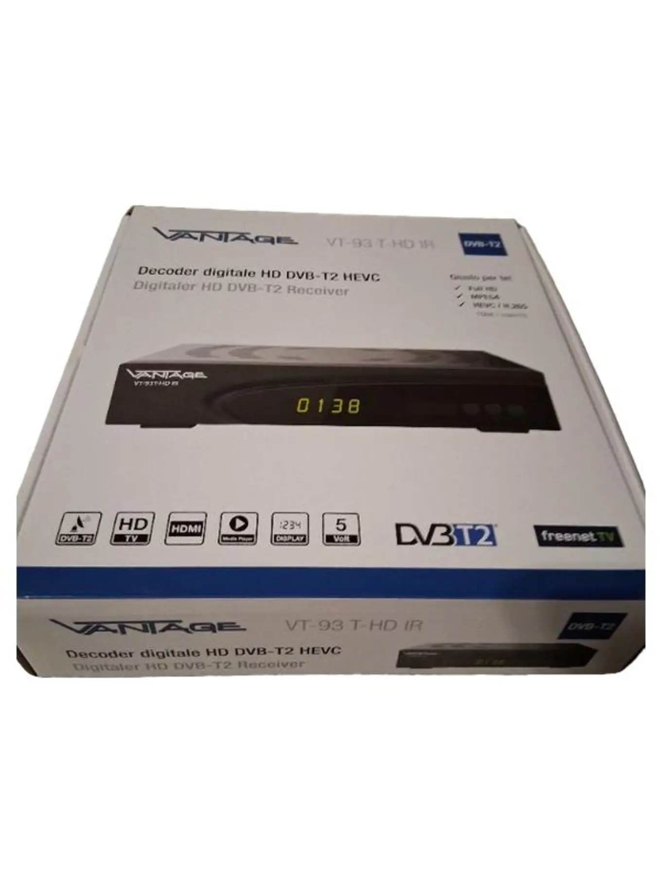 VANTAGE VT-93 T-HD IR DVB-T2 HD Receiver HEVC freenet TV HDMI