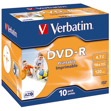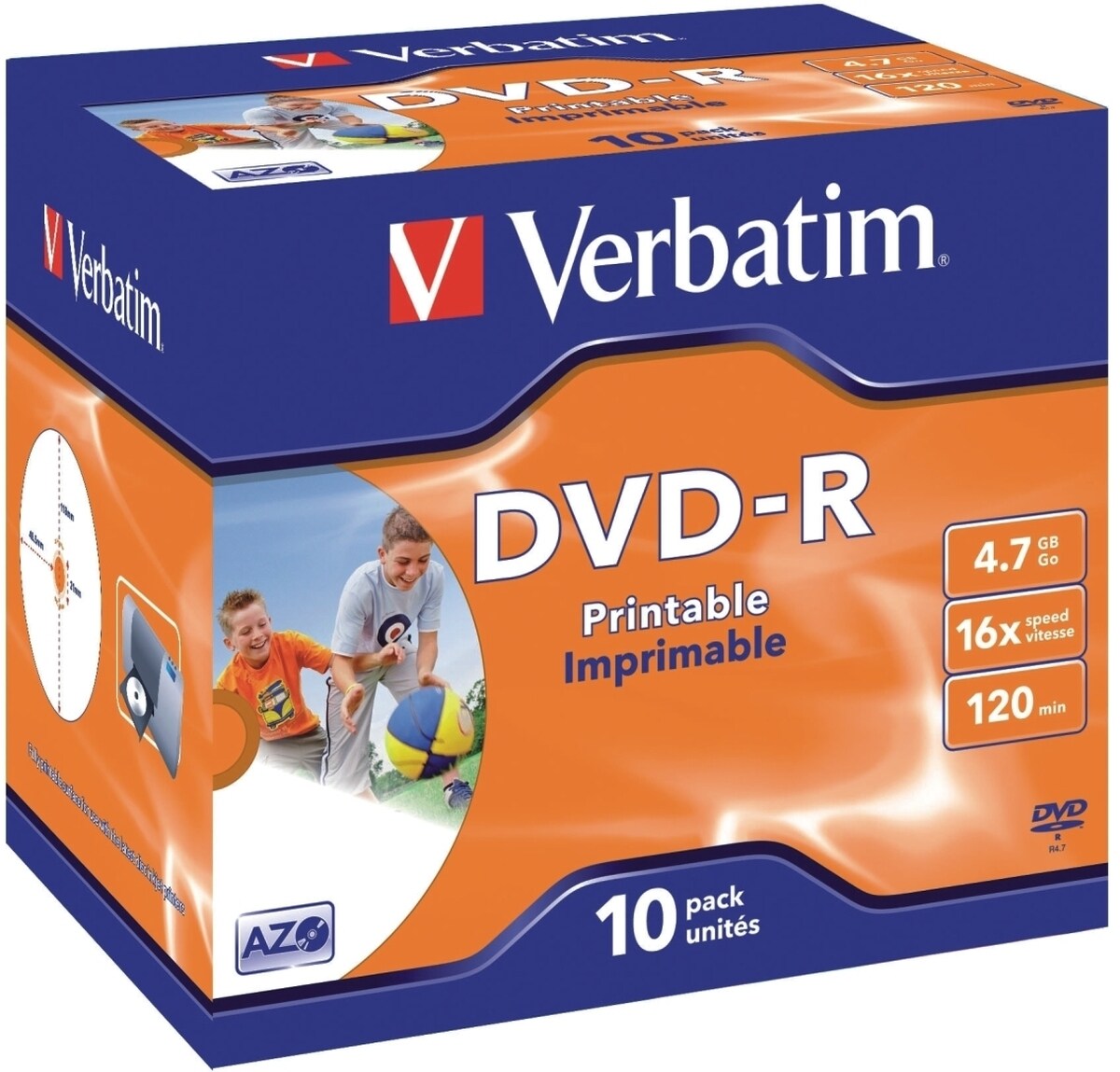 Verbatim DVD-R Jewelcase printable, 4,7Gb, 120 Minuten, 10 Stück