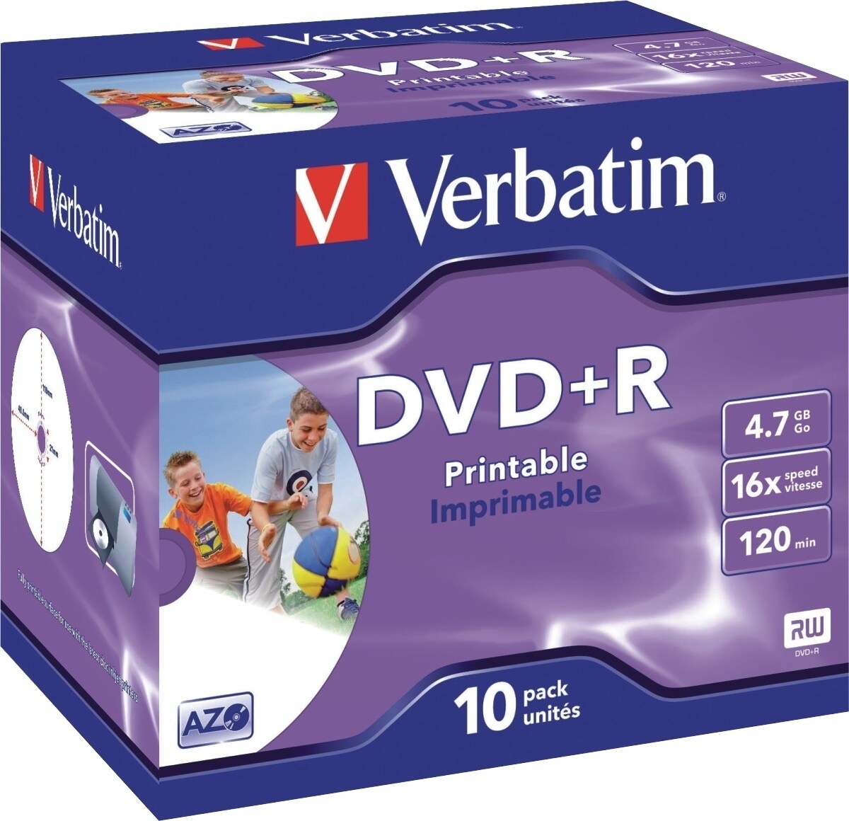 Verbatim DVD-Rohlinge bedruckbar DVD+R 4,7GB/16x im Jewel Case VE=10x10 Stück
