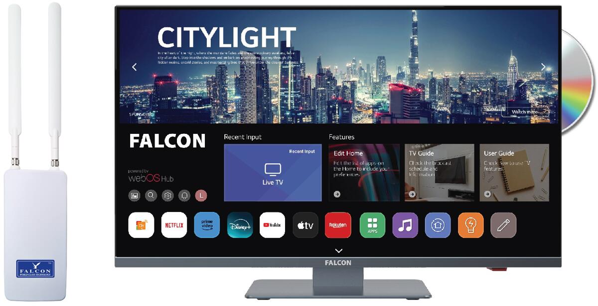 Falcon WebOS SMART Combo Camping TV 24" (60cm), DVD, HD-Ready, BT 5.0 mit 4G Router