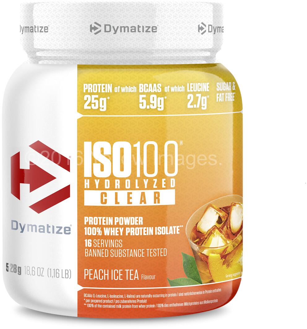 Dymatize ISO 100 Hydrolized Clear, 512 g Dose, Peach Ice Tea