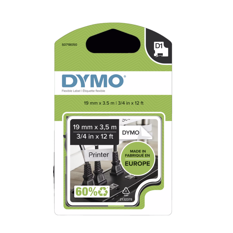 Dymo D1 ORIGINAL Schriftband, schwarz auf weiß, 19mm x 3,5m, S0718050