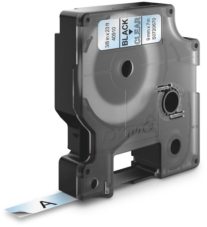 Dymo S0720670 D1-Schriftband für LabelManager, Polyester, 9mmx7m, Schwarzer Text auf transparentem Etikett