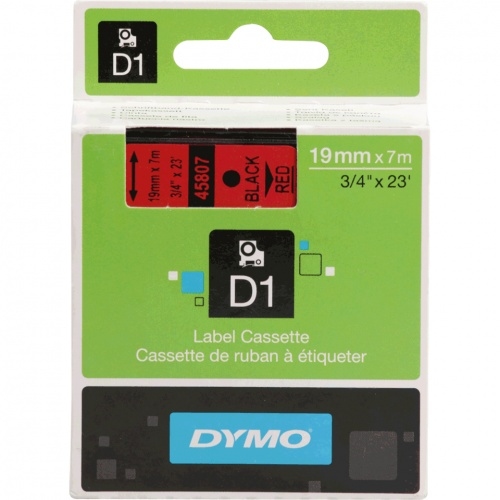 DULA Etikettenband - Kompatibel mit Dymo D1 45807 - 1 Stück - Schwarz auf rot - 19mm x 7m