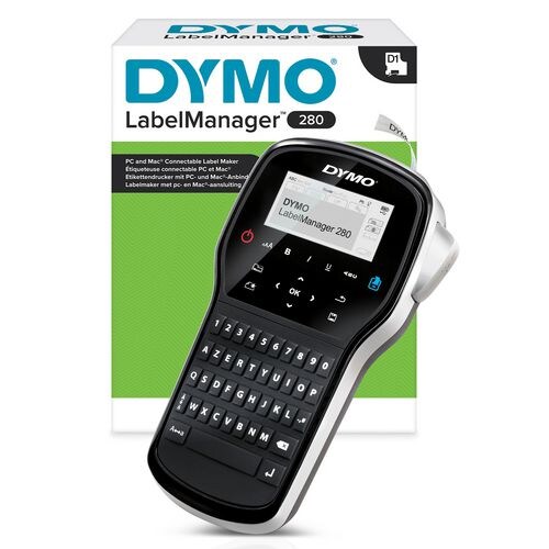 Dymo Labelmanager 280 Etikettendrucker Kit Qwerty Tastatur + Etiketten 6-12 Mm D1+ Ladegerät