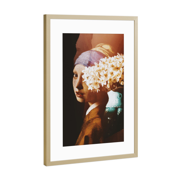 Poster mit Rahmen Gold "Girl with a Pearl Earring Collage" artboxONE - Floral,Menschen
