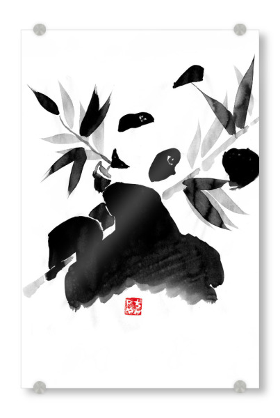 Acrylglasbild "Panda eating" artboxONE - Natur,Tiere,Schwarzweiß - Panda,Bamboo,Japan,Sumie,Black,White,Eating