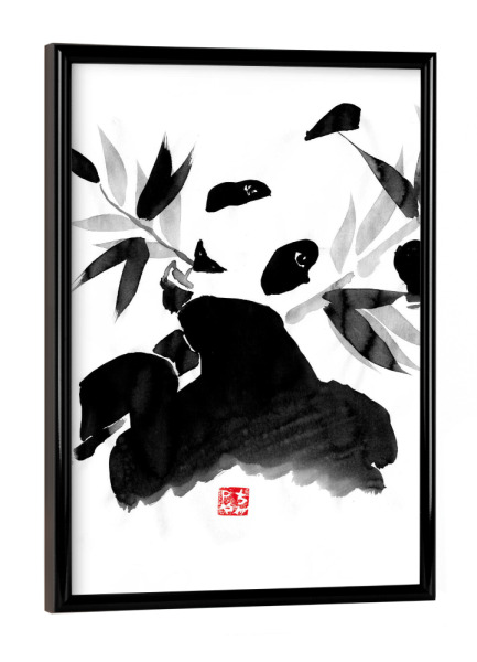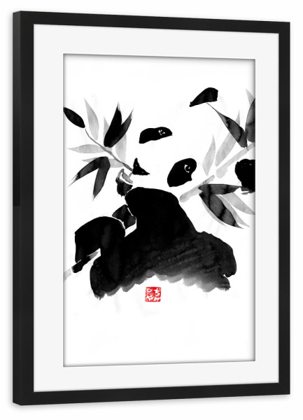Poster mit Rahmen schwarz "Panda eating" artboxONE - Natur,Tiere,Schwarzweiß - Panda,Bamboo,Japan,Sumie,Black,White,Eating
