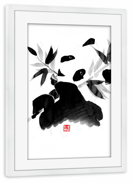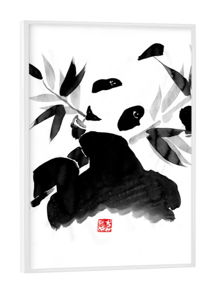 Poster mit Rahmen weiß "Panda eating" artboxONE - Natur,Tiere,Schwarzweiß - Panda,Bamboo,Japan,Sumie,Black,White,Eating