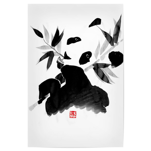 Poster "Panda eating" artboxONE - Natur,Tiere,Schwarzweiß - Panda,Bamboo,Japan,Sumie,Black,White,Eating