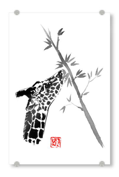 Acrylglasbild "Giraffe eating" artboxONE - Natur,Tiere - Giraffe,Tree,Sumie,Japan,Tier,Animal,Natur,Nature,Schwarzweiß,Blackandwhite