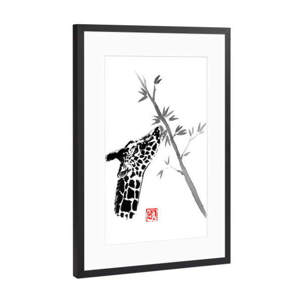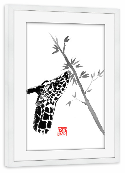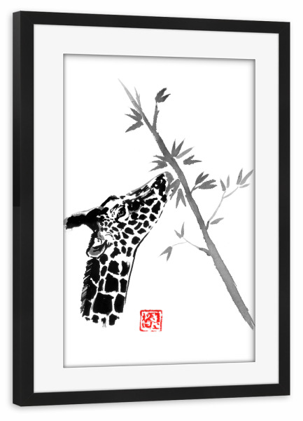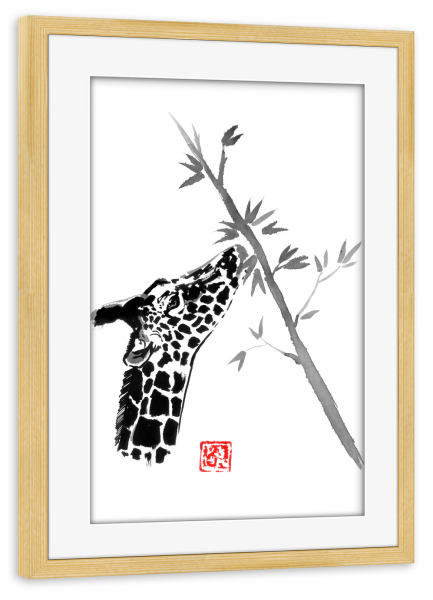 Poster mit Rahmen kiefer "Giraffe eating" artboxONE - Natur,Tiere - Giraffe,Tree,Sumie,Japan,Tier,Animal,Natur,Nature,Schwarzweiß,Blackandwhite