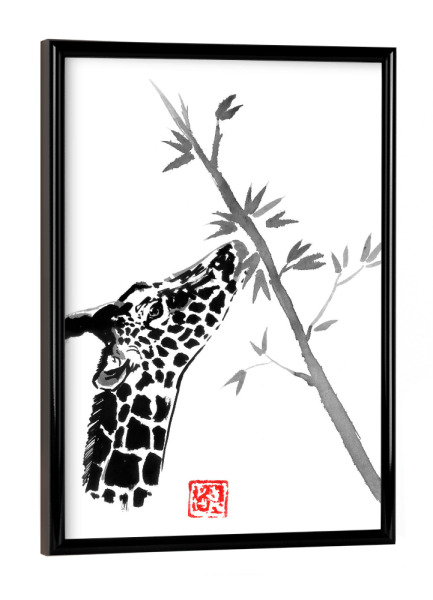 Poster mit Rahmen schwarz "Giraffe eating" artboxONE - Natur,Tiere - Giraffe,Tree,Sumie,Japan,Tier,Animal,Natur,Nature,Schwarzweiß,Blackandwhite