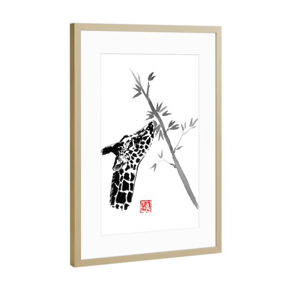 Poster mit Rahmen Gold "Giraffe eating" artboxONE - Natur,Tiere - Giraffe,Tree,Sumie,Japan,Tier,Animal,Natur,Nature,Schwarzweiß,Blackandwhite