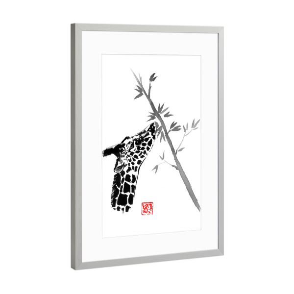 Poster mit Rahmen Silber "Giraffe eating" artboxONE - Natur,Tiere - Giraffe,Tree,Sumie,Japan,Tier,Animal,Natur,Nature,Schwarzweiß,Blackandwhite