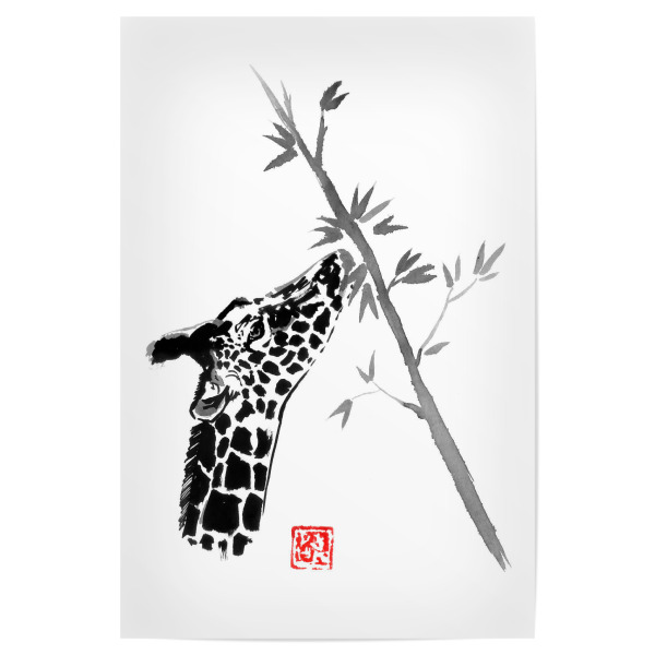 Poster 30x20 cm "Giraffe eating" artboxONE - Natur,Tiere - Giraffe,Tree,Sumie,Japan,Tier,Animal,Natur,Nature,Schwarzweiß,Blackandwhite