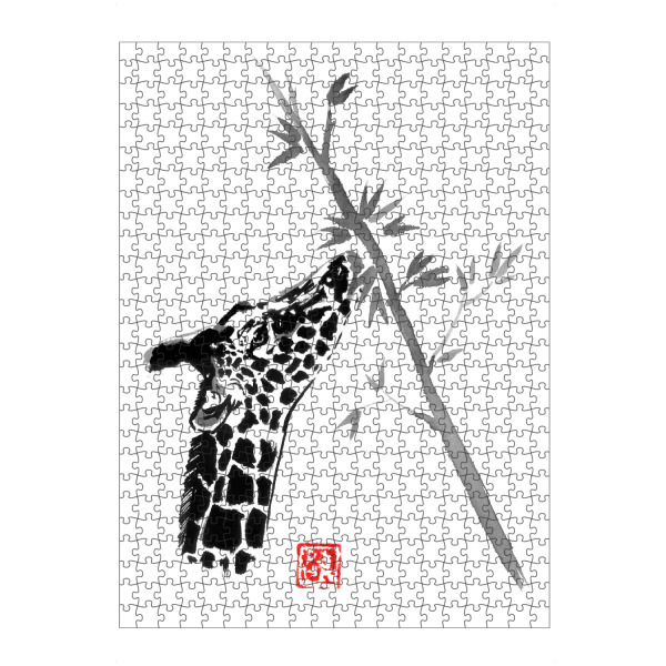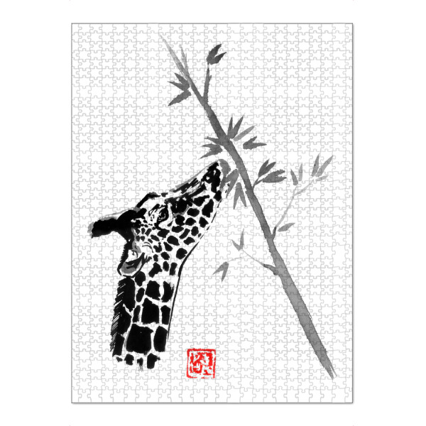 artboxONE Puzzle "Giraffe eating" artboxONE - Natur,Tiere - Giraffe,Tree,Sumie,Japan,Tier,Animal,Natur,Nature,Schwarzweiß,Blackandwhite