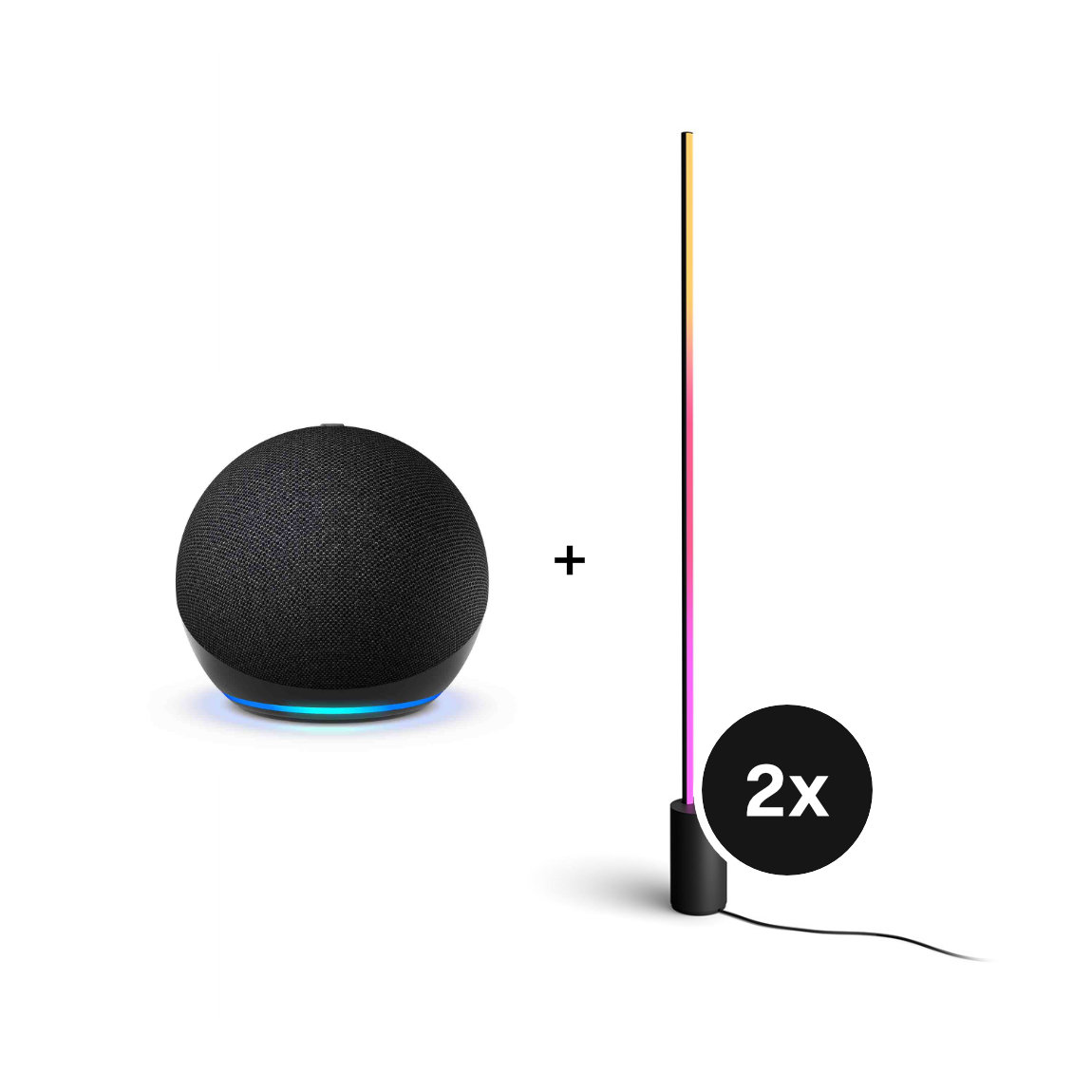 Amazon Echo Dot (5th Gen) + Philips Hue Gradient Signe Stehleuchte - Schwarz - 2er-Set